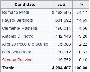 Inferiore alle aspettative fu invece il risultato ottenuto da Bertinotti: dall’esito delle primarie, infatti, il peso di Rifondazione Comunista all’interno dell’Unione si rivelò in flessione rispetto alle precedenti consultazioni elettorali.