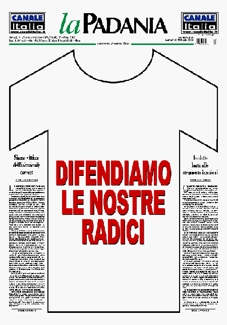 La prima pagina de La Padania di oggi