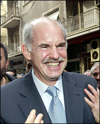 I due sfidanti di Papandreou alla carica di leader del partito erano il costituzionalista Evangelos Venizelos, 50 anni, deputato di Salonicco, e il deputato Costas Skandalidis, 54 anni, di professione ingegnere. Papandreou ha convocato le elezioni interne – inizialmente previste a febbraio – sulla scia delle dure critiche mossegli dagli iscritti per non essere riuscito a sconfiggere Nea Demokratia, il partito del premier Costas Karamanlis al governo), alle elezioni del 2004 e alle ultime nelle quali il Pasok ha ottenuto il risultato peggiore dal 1981 con appena il 38,1% dei voti e 102 deputati (su 300) in Parlamento