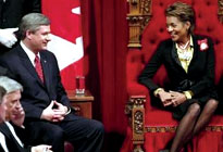 Il governatore generale del Canada, Michaëlle Jean, in rappresentanza della Regina Elisabetta (ufficialmente Capo di Stato del Canada) ha letto davanti al Parlamento, il “discorso del trono”, cioè un documento programmatico del premier conservatore Stephen Harper che capeggia un governo di minoranza.