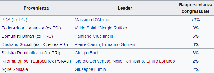 L’idea di D’Alema di unificare il PDS con altre forze della sinistra italiana fu anticipata il 18 febbraio 1995 da Ermanno Gorrieri durante la I Assemblea Nazionale dei Cristiano Sociali. Per D’Alema era giunto il momento «di dar vita a un raggruppamento politico tutto nuovo insieme alle altre formazioni politiche della sinistra, […] una formazione politica che si collocherebbe nell’area dei partiti socialdemocratici e laburisti europei».