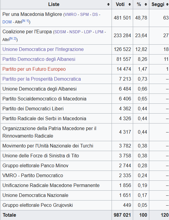 La votazione è stata indetta con due anni di anticipo rispetto al rifiuto della NATO di candidarsi per l’adesione della Macedonia a causa del dibattito sul suo nome . La vittoria è stata assegnata alla coalizione conservatrice e liberale del primo ministro Nikola Gruevski , che ha ottenuto la maggioranza assoluta dei seggi. Pertanto resta al potere, dopo aver formato un governo di coalizione con l’ Unione Democratica per l’Integrazione (BDI/DUI).
