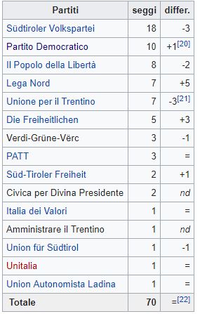 Nella provincia di Trento, si è registrata la vittoria del presidente uscente Lorenzo Dellai, sostenuto dal centro-sinistra, che ha sconfitto Sergio Divina, sostenuto dal centro-destra. Nella provincia di Bolzano, le elezioni hanno visto prevalere la Südtiroler Volkspartei e Luis Durnwalder è stato confermato presidente della provincia.