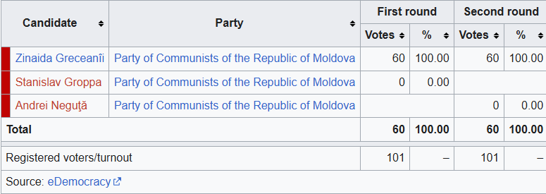 Secondo la commissione elettorale, i comunisti dovrebbero cosi ottenere tra i 61 e i 62 seggi, il che permetterà loro di ottenere la maggioranza dei 3/5 richiesta per eleggere il nuovo presidente della Moldavia tra l’8 aprile e l’8 giugno.