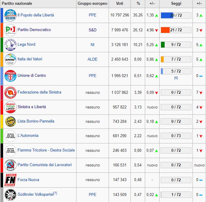 Sotto, molto al di sotto del 40 per cento. Inferiore addirittura al 37,4 delle politiche dell’ anno scorso. Per Berlusconi le europee sono state elezioni amare, deludenti: all’ una di notte le proiezioni ormai consolidate davano il Pdl al 35 – 35,6 per cento. Troppo poco per chi aveva sbandierato per tutta la campagna elettorale un sondaggio tra il 43 e il 45 per cento, con la sicurezza di arrivare almeno al 40. La sinistra avrebbe dovuto essere «spazzata via» dal Cavaliere e invece il Pd di Franceschini – pur arretrando di oltre sei punti rispetto alle drammatiche elezioni politiche del 2008 – atterra al 26,326,8 per cento, evita il tracollo che avrebbe portato al dissolvimento e si consola con la sconfitta del Pdl. Anche se il distacco tra il partito di maggioranza e quello di opposizione aumenta a quasi nove punti. Cosa ha penalizzato il partito di Berlusconi? A parte le vicende che hanno clamorosamente occupato le pagine dei giornali e dei siti web di tutto il mondo, l’ astensionismo, prima di tutto, soprattutto al Sud, dove in alcune regioni, per esempio la Sardegna, è aumentata del 50 per cento. Ma anche in Sicilia, serbatoio di voti di Berlusconi, l’ astensionismo è aumentato di circa nove punti. In totale ha votato per le europee il 67 per cento degli elettori italiani, un risultato molto alto se confrontato con gli altri paesi europei, ma molto basso per il nostro Paese: 73 alle precedenti europee, 80,5 alle politiche. L’ altro elemento che ha penalizzato il Pdl è stato certamente il successo della Lega che si attesta tra il 9,2 e il 9,5 per cento. In Veneto il Carroccio tallona il Pdl e ha «sfondato» il Po ottenendo successi in Emilia con circa l’ 11 per cento, Marche con il 5,2 mentre il Pdl sorpassa il Pd e le diciannove aveva votato alle europee il 52,86 per cento degli elettori: sei punti in meno di cinque anni fa quando aveva votato il 58,55. Clamoroso il dato dell’ Aquila, dove si votava solo per le europee. Alle diciannove, negli 81 seggi allestiti anche nelle tendopoli l’ affluenza alle urne era del 23,4%. Un calo vertiginoso rispetto alle Europee del 2004, quando alle 19 aveva votato nel capoluogo abruzzese il 57,3 degli elettori.A picco anche in Sardegna la percentuale dei votanti che si è dimezzata: 29,2 nell’ isola contro il 60 per cento di cinque anni fa. 32,3 a Cagliari contro il 59,6. Affluenza in calo del 3,5% anche in Toscana. Ad Arezzo dove non ci sono le comunali, per le europee aveva votato quasi il 13% in meno degli eventi diritto menUmbria: 4,4 per la Lega mentre Pdl e Pd se la giocano per il primato regionale. Il Pd arretra un po’ dappertutto, comprese le tradizionali regioni «rosse», mentre l’ Italia dei valori di Di Pietro cresce ed è quotato nelle proiezioni della notte tra l’ 8 per cento e l’ 8,5. L’ Udc di Casini ottiene un lusinghiero 6,1-6,5: Male la sinistra radicale. Astensione in forte aumento nelle elezioni europee ma anche alle amministrative, nelle province e nei comuni in cui si è votato. Il calo complessivo europeo per numero di votanti è stato ancora più massiccio, al minimo storico con il 43,24, ma anche in Italia l’ astensionismoè rilevante anche se il presidente del consiglio a metà pomeriggio prevedeva che «avremo la più alta percentuale in Europa». Altre Prato è in controtendenza e per le comunali, alla stessa ora, aveva votato il 38,9% contro il 38,7% delle ultime elezioni. In controtendenza anche Milano, sia per le elezioni europee che per quello provinciali. Il capoluogo lombardo ha fatto registrare un’ affluenza alle urne superiore al dato medio generale. Per quanto riguarda le europee, l’ affluenza nazionale si è attestata sul 64,32% mentre quella milanese ha raggiunto il 73,79% (percentuale comunque inferiore al 77,84% delle ultime consultazioni per il rinnovo del Parlamento europeo). Sul fronte delle provinciali, invece, al livello nazionale hanno votato 71,63% degli aventi diritto contro il 73,71% di Milano (era stato però il 77,94% cinque anni fa).