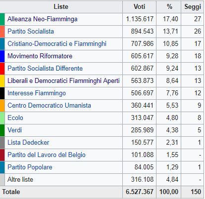 Il Partito liberale delle Fiandre, che aveva provocato la caduta anticipata del governo, è la terza forza politica della regione col 14 per cento. Gli indipendentisti di estrema destra del Vlaams Belang e altre formazioni populiste e xenofobe, perdono voti a favore dei moderati di De Wever. La Nva, che al Parlamento europeo è affiliata al gruppo dei Verdi, predica un separatismo “dolce”, sul modello cecoslovacco. Per ora, De Wever si limita a chiedere la trasformazione del Belgio da stato federale a stato «confederale», con la cessione di ancora maggiore autonomia alle due comunità fiamminga e francofona. Ma non fa mistero che, in prospettiva, vorrebbe vedere il regno «evaporare» per lasciare spazio a due stati separati nell’ ambito dell’ Unione europea: più o meno come avvenne con la separazione dei cechi dagli slovacchi.