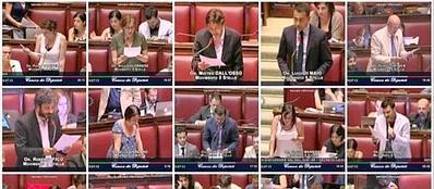 Nell’Aula, dove per l’intera notte ha condotto i lavori ininterrottamente il vicepresidente Roberto Giachetti (che ha sospeso la seduta fiume per soli cinque minuti per una pausa tecnica attorno alle 3), sono rimasti praticamente solo i deputati dell’M5S, che si davano il turno al microfono, ed un rappresentante del governo, oltre ad alcune “sentinelle” degli altri partiti. Una lunga notte, insomma, dopo che nelle ore precedenti Grillo ha difeso a spada tratta l’articolo 138 della Costituzione. Il leader del M5S ha scritto sul blog «L’articolo 138 è la barriera tra la Costituzione e i partiti. Impedisce che ne sia fatta carne da porco. Prevede due volte il voto delle Camere e un referendum popolare di conferma. I saggi, prima 10 e poi 40, di stretta osservanza governativa, solo pd, pdmenoelle e scelta civica, nessuno del M5S, stanno operando laboriosamente per spossessare il Parlamento delle sue (poche) prerogative».