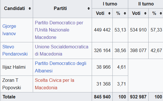 In contemporanea al voto nazionale si è tenuto il ballottaggio delle presidenziali, dove il presidente in carica Gjiorgji Ivanov – candidato dalla VMRO – ha battuto con largo margine il candidato socialdemocratico Stevo Pendarovski, e si è così assicurato un secondo mandato.