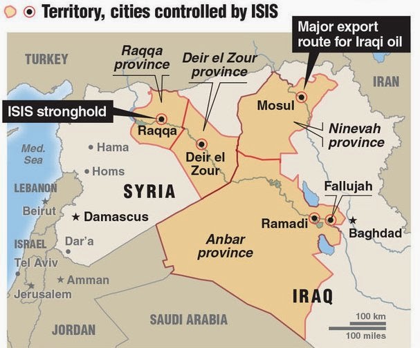 Sembra sia un falso il decreto secondo il quale tutte le donne devono essere sottoposte a infibilazione.Invece è vera che è stata ripristinata la sharia. Si hanno notizie di una donna decapitata per adulterio. Una scena così, a Mosul, fino a qualche mese fa era inimmaginabile. Da quando a governare sulla seconda città dell’Iraq sono i terroristi, però, la minaccia jihadista è talmente concreta da preoccupare seriamente gli abitanti della capitale Baghdad. Nove persone sono state crocifisse dai terroristi nella provincia di Aleppo. I nove facevano parte di formazioni ribelli che combattono contro Bashar al Assad, considerate però dal califfato troppo moderate. Gli otto uomini crocifissi in piazza a Deir Hafer e il nono ad Al Bab sono stati lasciati davanti agli occhi di tutta la cittadinanza per tre giorni come monito. Siria e Iraq ormai non esitono più: ci sono Il nuovo califfato dell’Isis, il Kurdistan iracheno (perchè il vero kurdistan èmolto più ampio) e qurel poco che rimane dei vecchi due stati.
