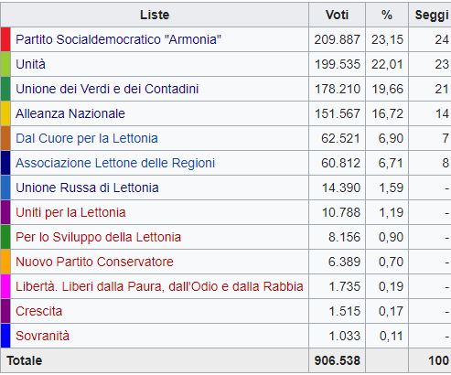 La Lettonia ha votato per il rinnovo dei cento seggi del Parlamento monocamerale. La vittoria, come previsto dai sondaggi, va alla coalizione quadripartita di centrodestra, attualmente al potere, guidata dal primo ministro Laimdota Straujuma. Coalizione che otterrebbe più del 61% dei voti e 63 scranni. Ma il partito con il maggior numero di deputati è Armonia, i socialdemocratici del sindaco di Riga Nils Usakovs, con oltre il 21% delle preferenze. A condizionare pesantemente le legislative la crisi russo-ucraina. La maggior parte dei due milioni e duecentomila lettoni teme infatti che il Cremlino, dopo l’Ucraina, rivolga le sue ‘attenzioni’ ai Paesi Baltici parte, fino al 1991, dell’Unione Sovietica. Ad appoggiare i socialdemocratici, filo-Mosca, la popolazione di etnia russa, un quarto del totale. La Lettonia, dopo una crisi profondissima che ha richiesto drastici tagli alla spesa pubblica, da gennaio ha aderito all’Eurozona. Ora è il Paese dell’Unione con la maggiore crescita economica.