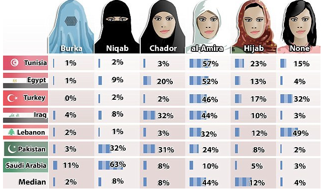 Sempre più donne completamente coperte (con solo gli occhi visibili) e contemporaneamente gente (anche italiana) che parte per andare a fare la guerra in Medio Oriente. Di burqa a dire la verità ne vedo pochi in giro, ma il numero di Niqab nelle strade italiane sta aumentando esponenzialmente. Basta farci caso.