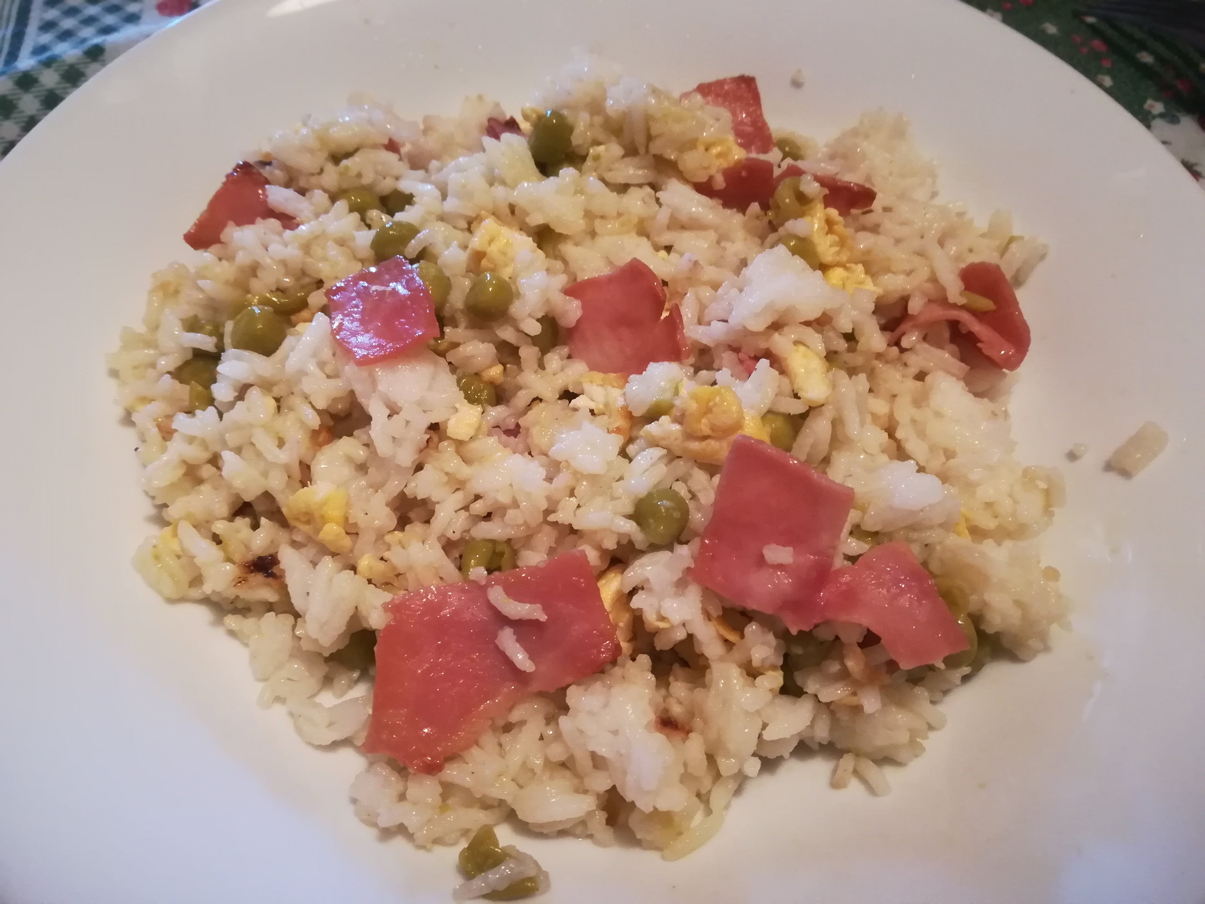 Ingredienti: Riso, piselli, prosciutto, uovo