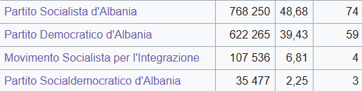 Un totale di 46 partiti politici, di cui 5 si sono candidati per la prima volta, si sono registrati presso la Commissione elettorale centrale. Alle elezioni del 25 aprile 2021 gli elettori hanno avuto la possibilità di scegliere tra 12 soggetti elettorali, di cui 3 coalizioni, mentre in alcune circoscrizioni hanno partecipato anche cinque candidati indipendenti. Il più grande partito di opposizione, il PD, ha formato la coalizione Partia Demokratike – Aleanca për Ndryshim (PD-AN), (Alleanza per il Cambiamento), unendo le forze con dodici partiti minori. La LSI, anch’essa all’opposizione, ha formato una propria coalizione chiamata Shqipëria – Shtëpia Fituese (ShQF), (Albania – La Casa Vincente). Mentre il partito di governo PS, ha deciso di candidarsi alle elezioni da solo ma con l’inserimento di alcuni candidati di altri partiti alleati.