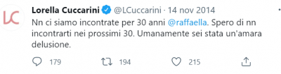 Qualcosa non torna. Nel 2014 si augurava di non incontrarla «per i prossimi 30 anni», definendola «umanamente un’amara delusione», ma ora Lorella Cuccarini definisce Raffaella Carrà come un «mito di sempre»: