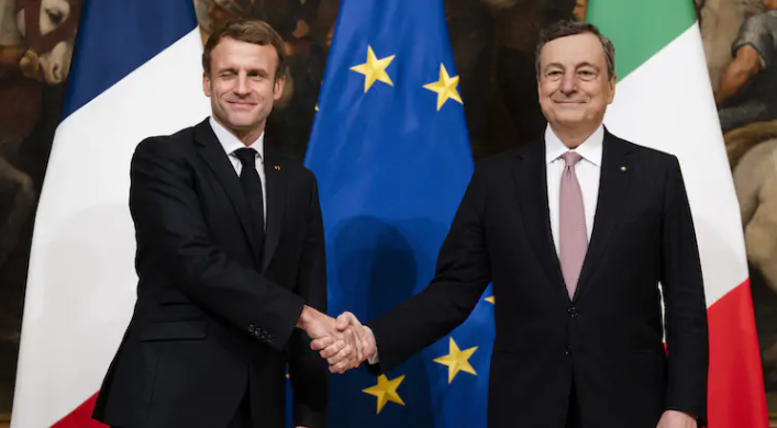 Venerdì 26 novembre il presidente francese Emmanuel Macron e il presidente del Consiglio Mario Draghi hanno firmato, davanti al presidente della Repubblica Sergio Mattarella, il “Trattato tra la Repubblica Italiana e la Repubblica Francese per una cooperazione bilaterale rafforzata”, il cosiddetto “trattato del Quirinale”, un trattato di cooperazione tra Francia e Italia che segna un importante cambiamento delle difficili relazioni degli ultimi anni tra i due paesi e che viene descritto come un momento politicamente significativo.