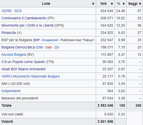 Dalle urne, è risultato vincitore il partito di centro-destra “Cittadini per lo Sviluppo Europeo della Bulgaria” (GERB) dell’ex-primo ministro Bojko Borisov, con il 24,48% dei voti e 67 seggi, seguito dal partito filo-europeista “Continuiamo il Cambiamento” (PP) dell’altresì ex-primo ministro Kiril Petkov, con il 19,52% dei voti e 53 seggi, e dal partito e filo-turco “Movimento per i Diritti e le Libertà” (DPS/HÖH) di Mustafa Karadayi, con il 13,29% dei voti e 36 seggi. L’elezione ha, inoltre, visto un incremento sostanziale, in linea con le elezioni precedenti, dei consensi verso il partito di estrema destra, euro-scettico e altamente nazionalista “Rinascita” (V), giunto quasi alla soglia di 30 seggi, così come l’ascesa del partito Ascesa Bulgara del filo-russo Stefan Janev e la scomparsa del partito “C’è un Popolo come Questo” (ITN) di Slavi Trifonov, che nelle ultime tre elezioni aveva debuttato sulla scena nazionale e, nelle elezioni del luglio 2021, anche ottenuto la maggioranza relativa in parlamento.