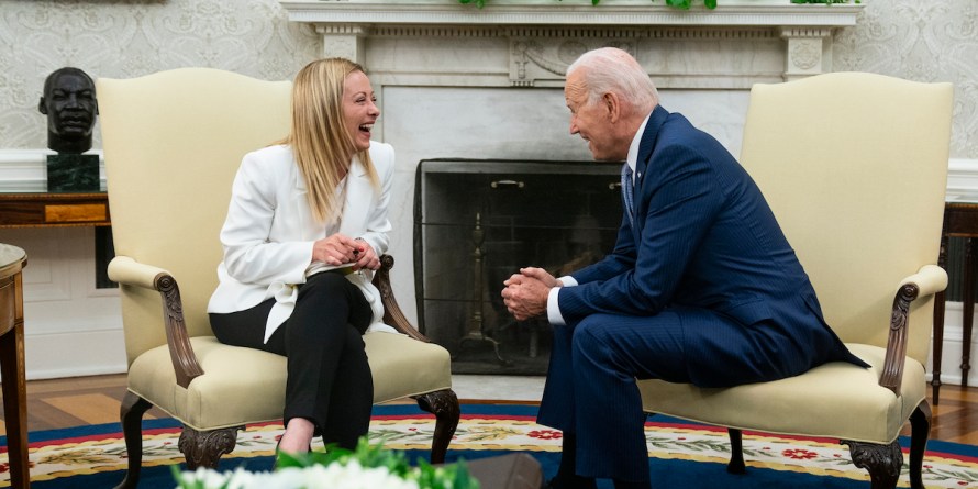 Biden ha esordito dicendo a Meloni: «siamo diventati amici», una cosa notevole se si considera che lo scorso autunno il presidente americano, così come diversi altri leader occidentali, aveva indicato la vittoria di Fratelli d’Italia alle elezioni italiane come una ragione di preoccupazione nel contesto di un generale spostamento verso l’estrema destra di molti paesi europei. Allora il governo statunitense aveva fatto sapere che avrebbe valutato l’operato di quello italiano strada facendo, prima di prendere posizioni definitive su Fratelli d’Italia e sul nuovo governo di destra in Italia.