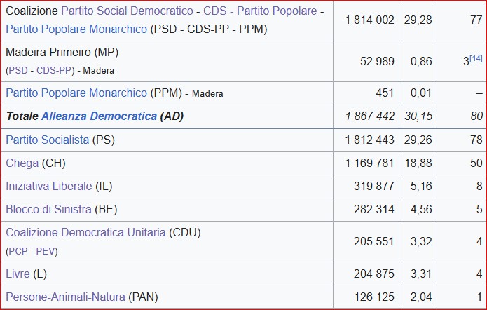 Un altro dato certo delle elezioni è che l’appello al «voto utile» fatto nelle scorse settimane dai principali partiti che fino ad ora avevano governato il paese non è stato accolto dai cittadini e dalle cittadine portoghesi. «Il risultato dimostra che i portoghesi non hanno risposto all’appello per un voto utile e hanno deciso di votare con sincerità: abbiamo il parlamento più frammentato di sempre e dobbiamo tornare al 1985 per avere un’elezione in cui PS e PSD insieme avevano meno del 64 per cento», ha commentato la politologa Marina Costa Lobo.