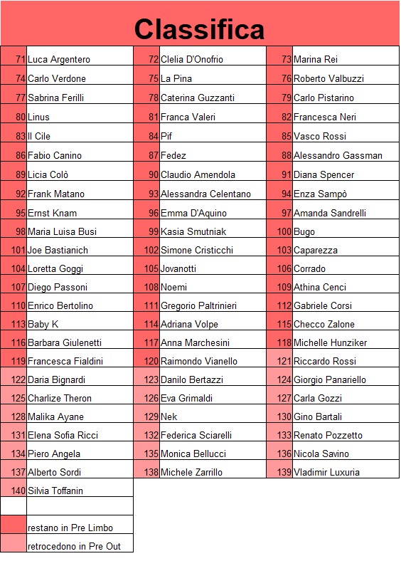 | passano a IN | restano in Limbo 71°/80° classificati) |