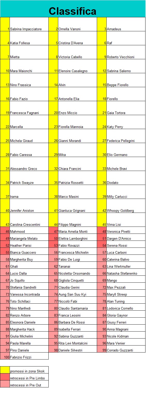| 100° posto vengono retrocessi in zona PreLimbo o PreOut dell’edizione successiva. |