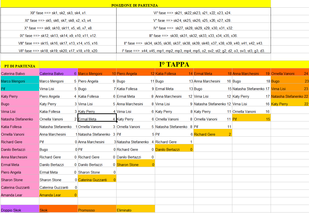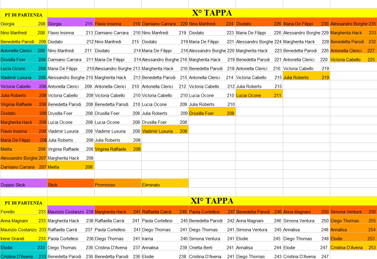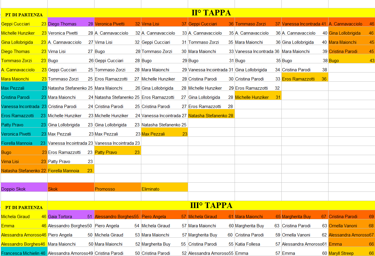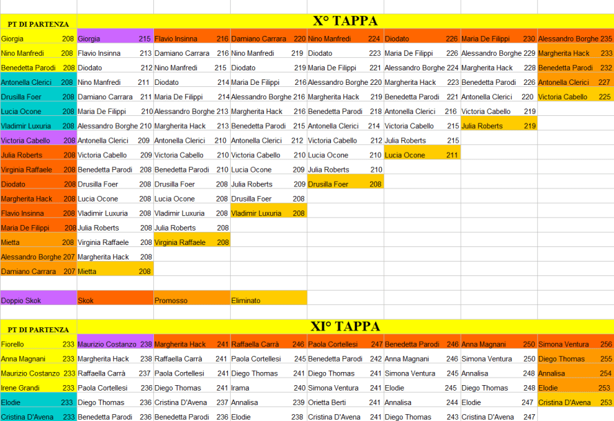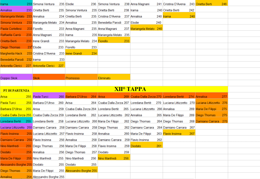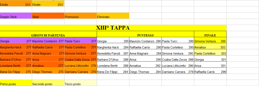 | prendono il punteggio del personaggio promosso con più punti. Fino alla dodicesima tappa ci sono sempre tre superstiti della tappa precedente |