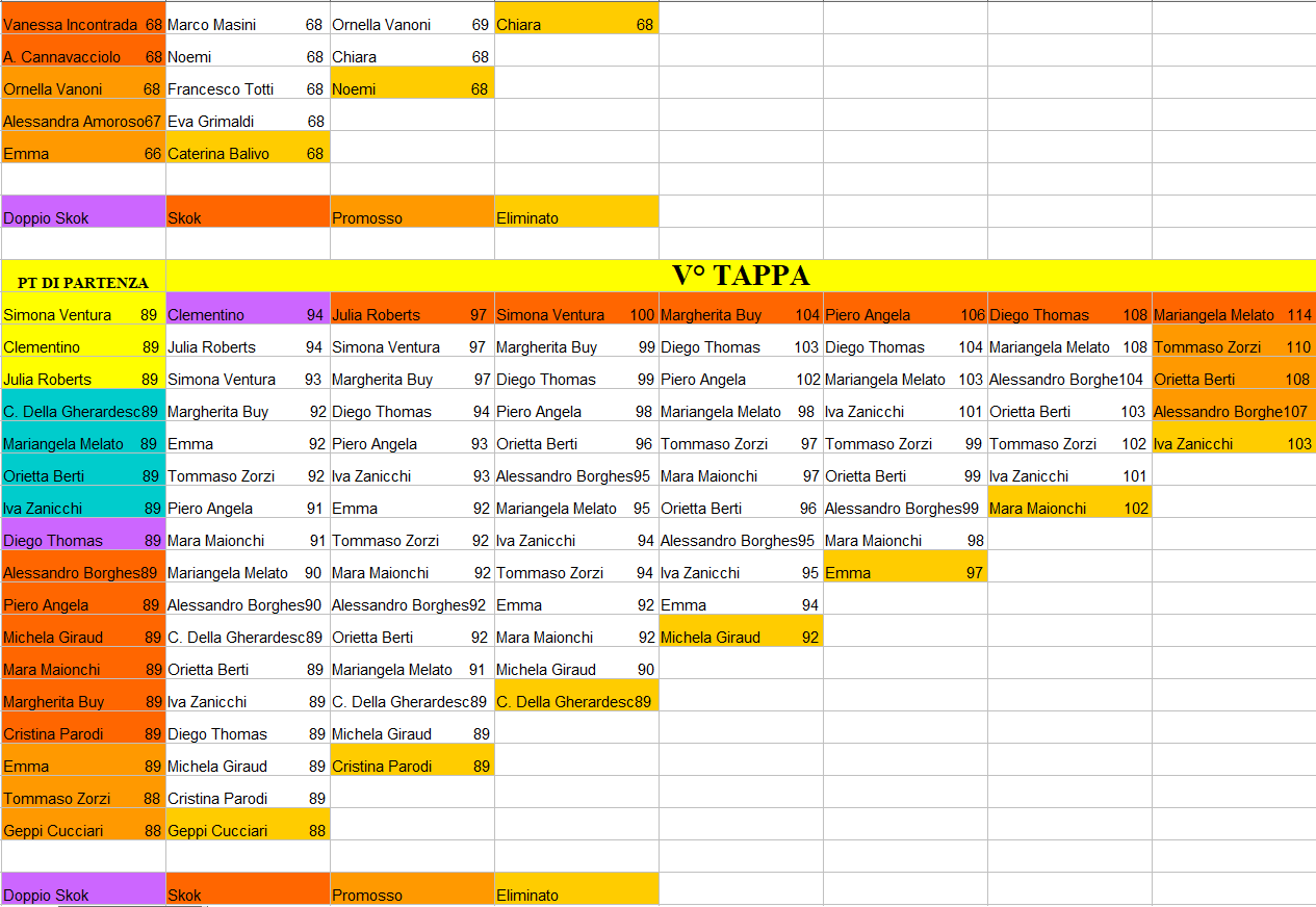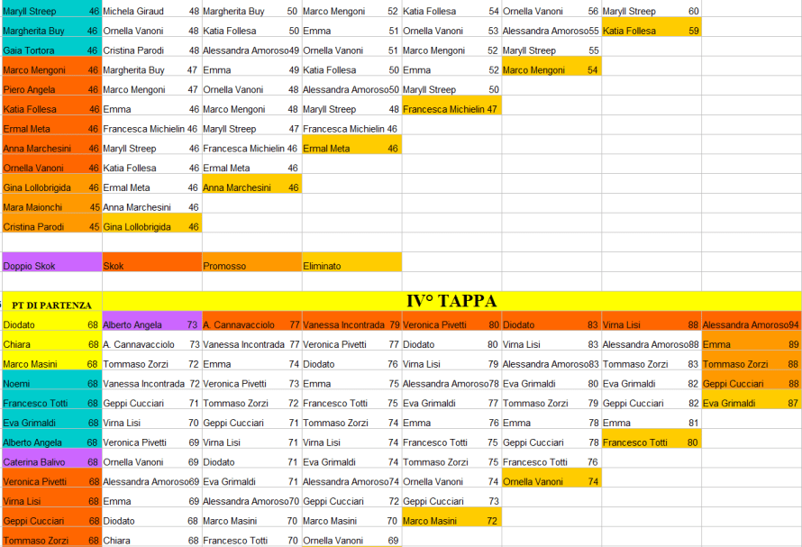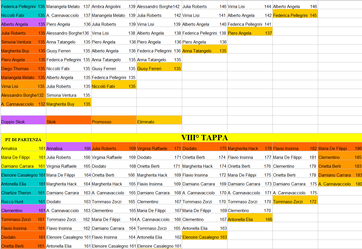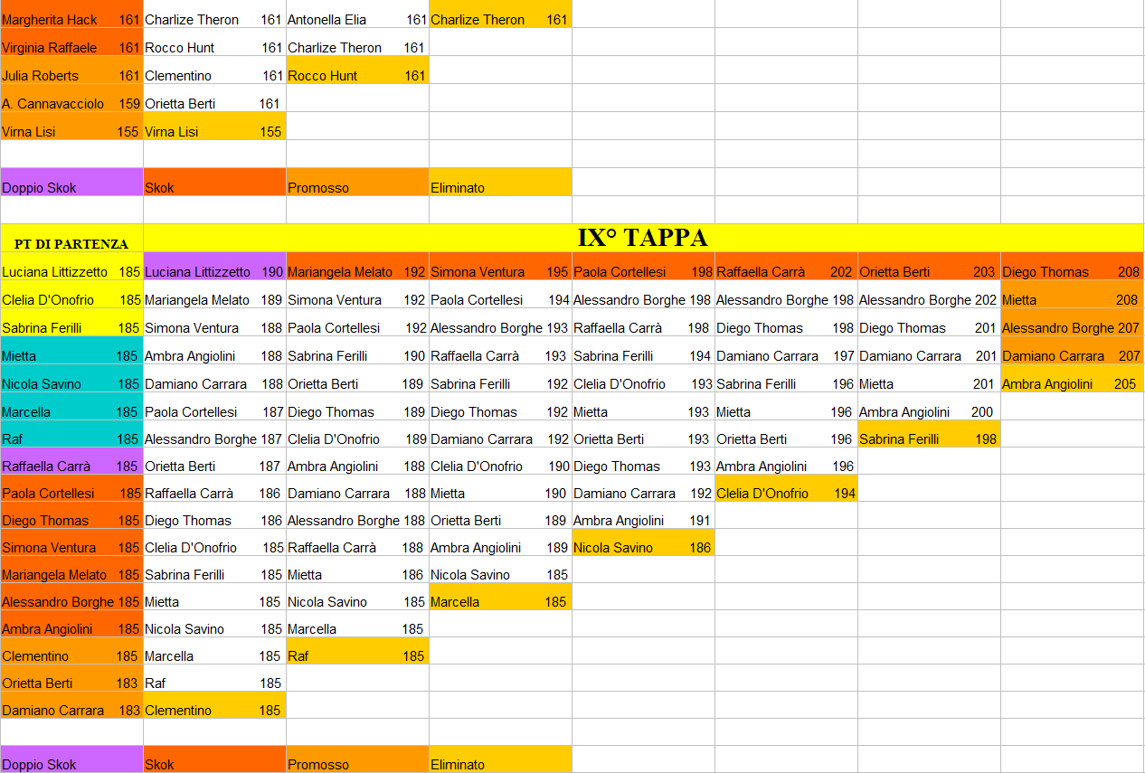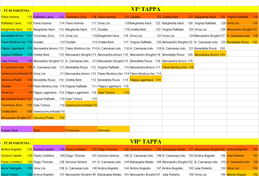 | prendono il punteggio del personaggio promosso con più punti. Fino alla dodicesima tappa ci sono sempre tre superstiti della tappa precedente |