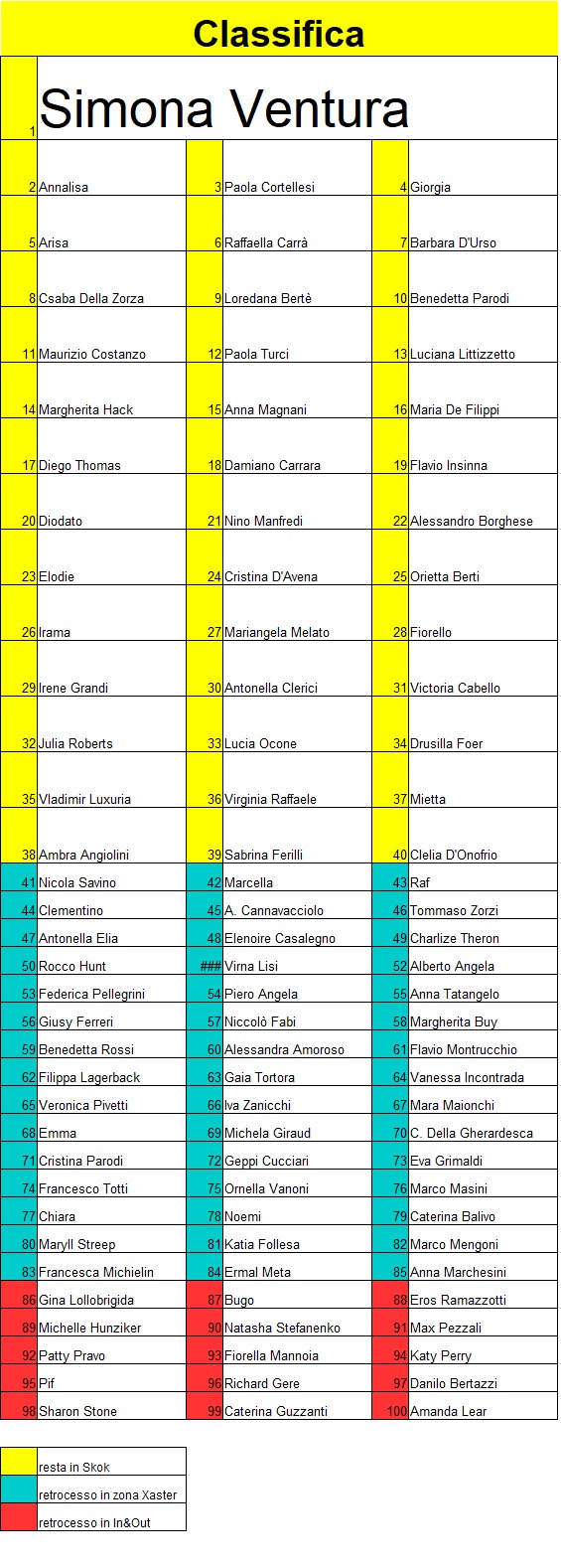 | concluso i classificati tra il 41esimo e l’85esimo posto vengono retrocessi nella zona Xaster del successivo ciclo e quelli tra 86esimo e il 100° |