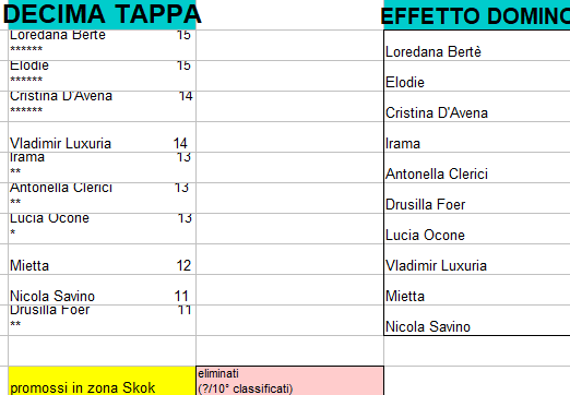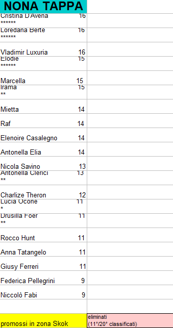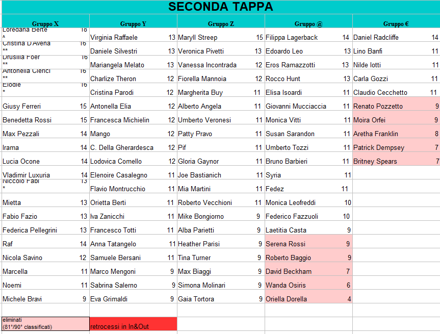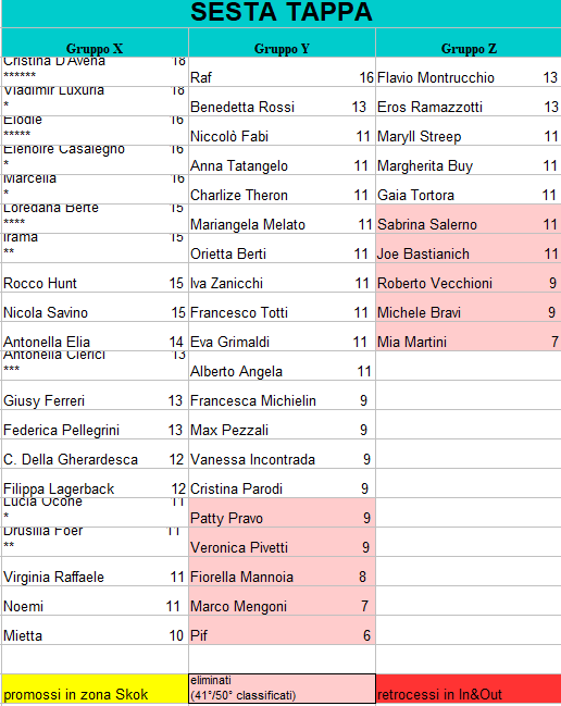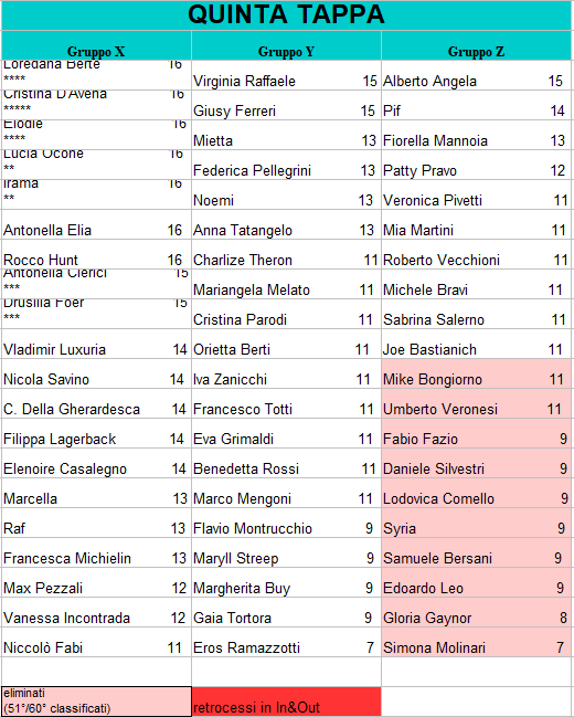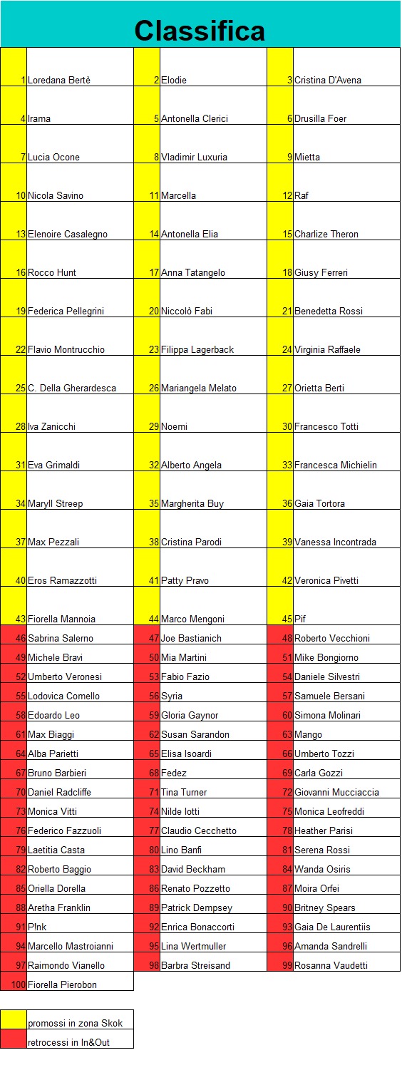 | Lodovica Comello | Mango | Maryll Streep | Elisa Isoardi | Heather Parisi | Tina Turner | Sabrina Salerno |