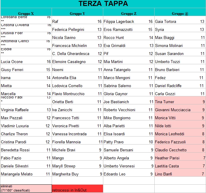 | Benedetta Rossi | Elodie | Orietta Berti | Iva Zanicchi | Marco Mengoni | Francesco Totti | Mike Bongiorno |