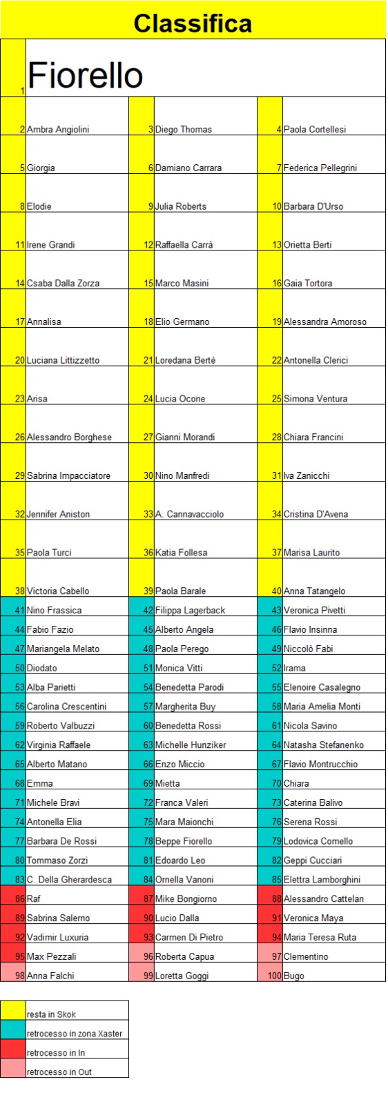 | zona Skok scorso ciclo | In&Out questo ciclo | ||||||