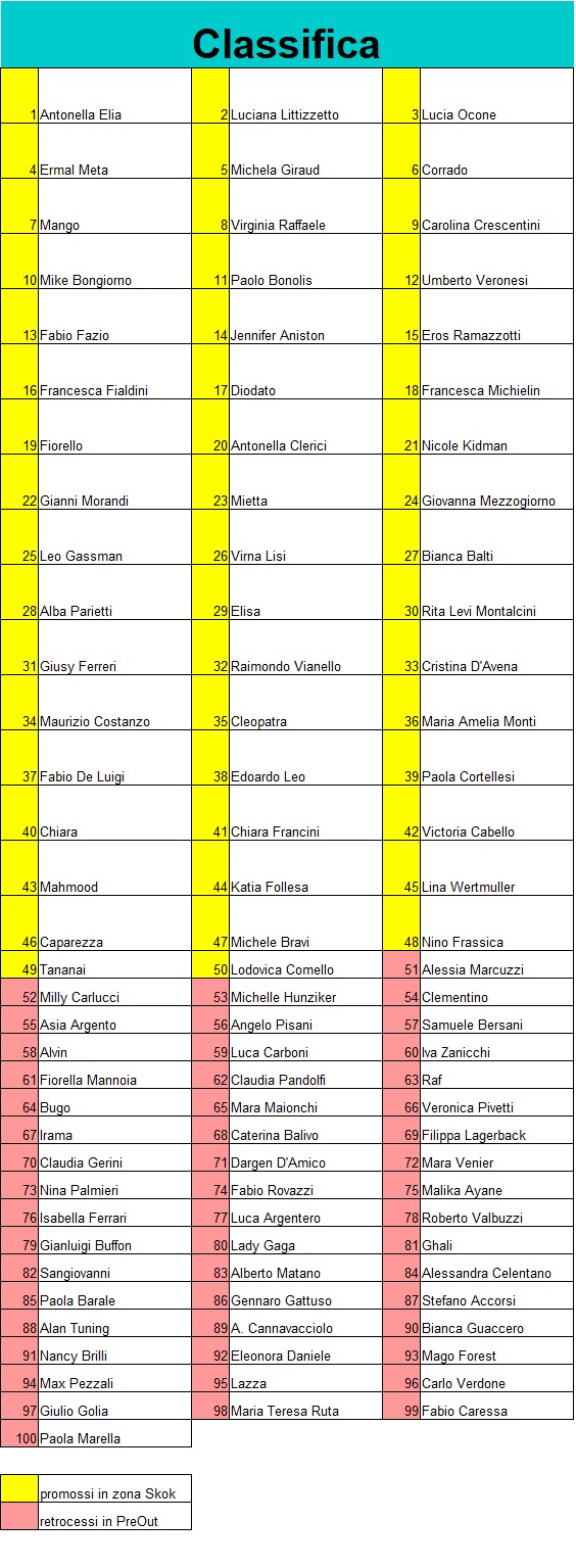 | eliminati (91°/100° classificati) |