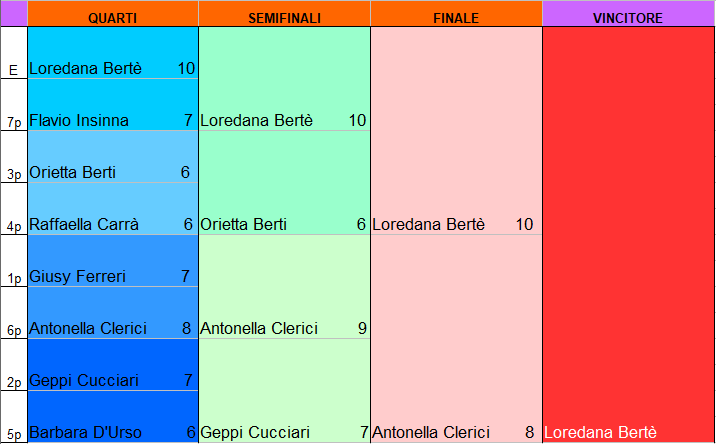| 2pt se piace poco, 3pt se piace, 4pt se piace molto, 5 pt per gli idoli. In caso di parità si guarda la classifica |