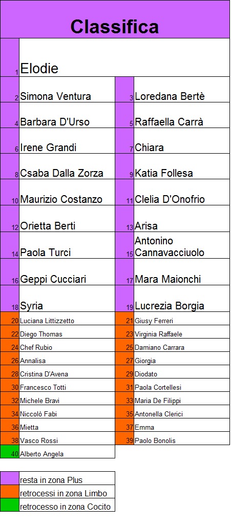 | trentanovesimo posto vengono retrocessi nella zona Limbo del successivo ciclo e l’ultimo in zona Cocito; mentre i | |||||