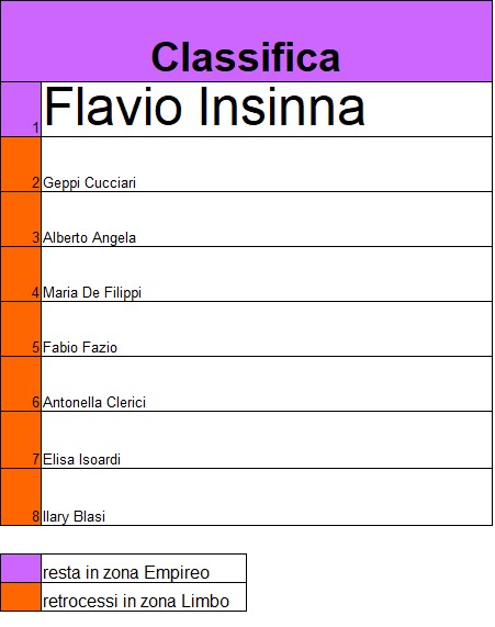 | La zona Empireo costituisce la più importante torneo dell’intero ciclo di “Miglior personaggio”. I partecipanti sono 8. |